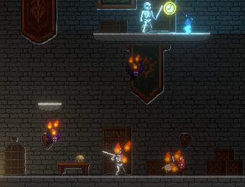 - Original Player Graphics created by Penzilla Design - Enemy (Bat|Skeleton|Mushroom) Graphics created by MonoPixelArt - Boss (large black creature) Graphics created by Escape-Pixel - Boss (sickler) Graphics created by Immortal-Burrito - Boss (axion) Graphics created by jesshiyoo